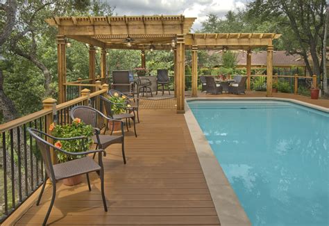 Add stylish railings to an elevated deck this terraced space features composite decking from. Web whether you’re looking at adding a simple structure or something grander for your swimming pool area such as a pool house or even some. Web a luxury poolside pergola is built to last.